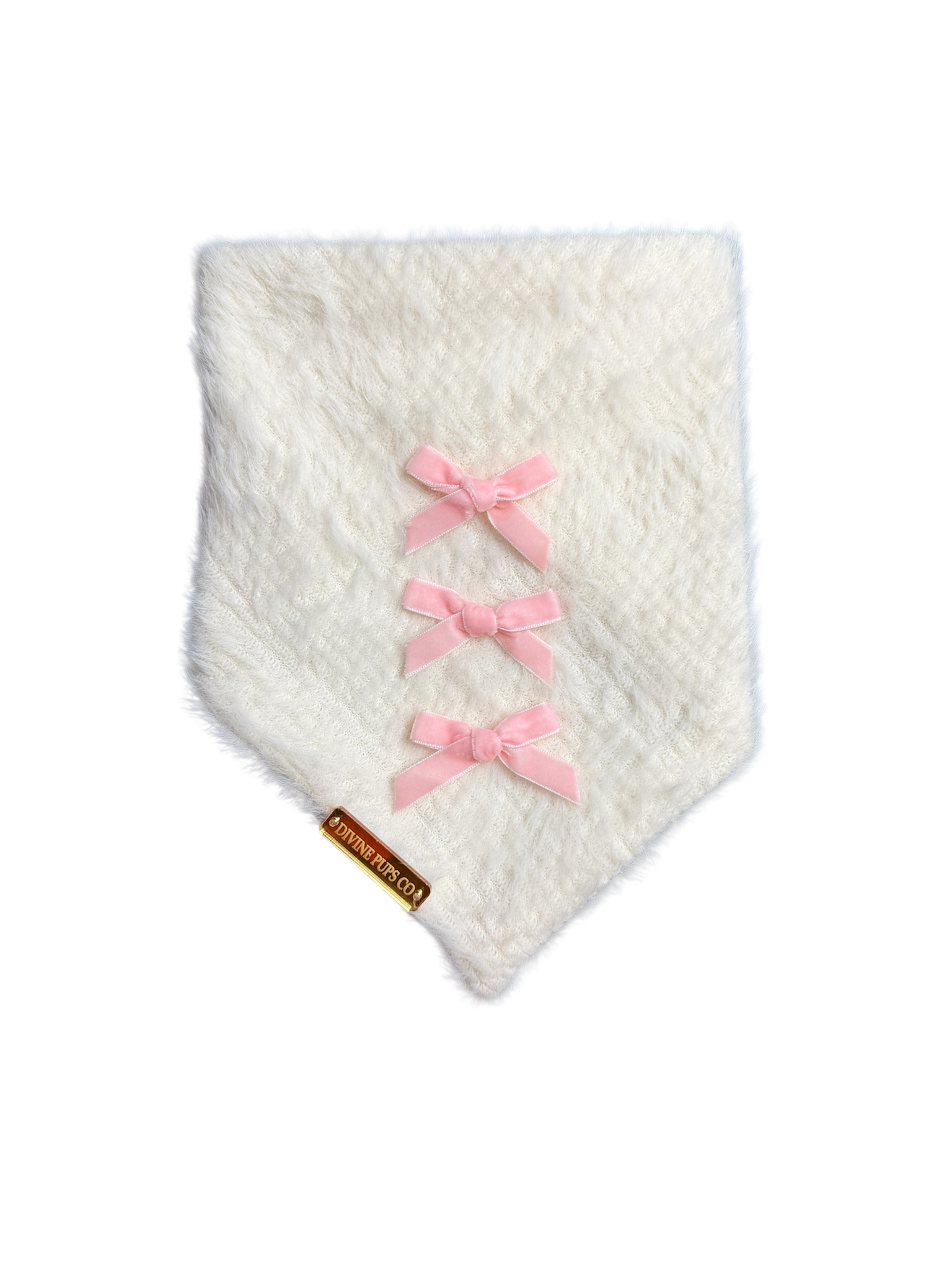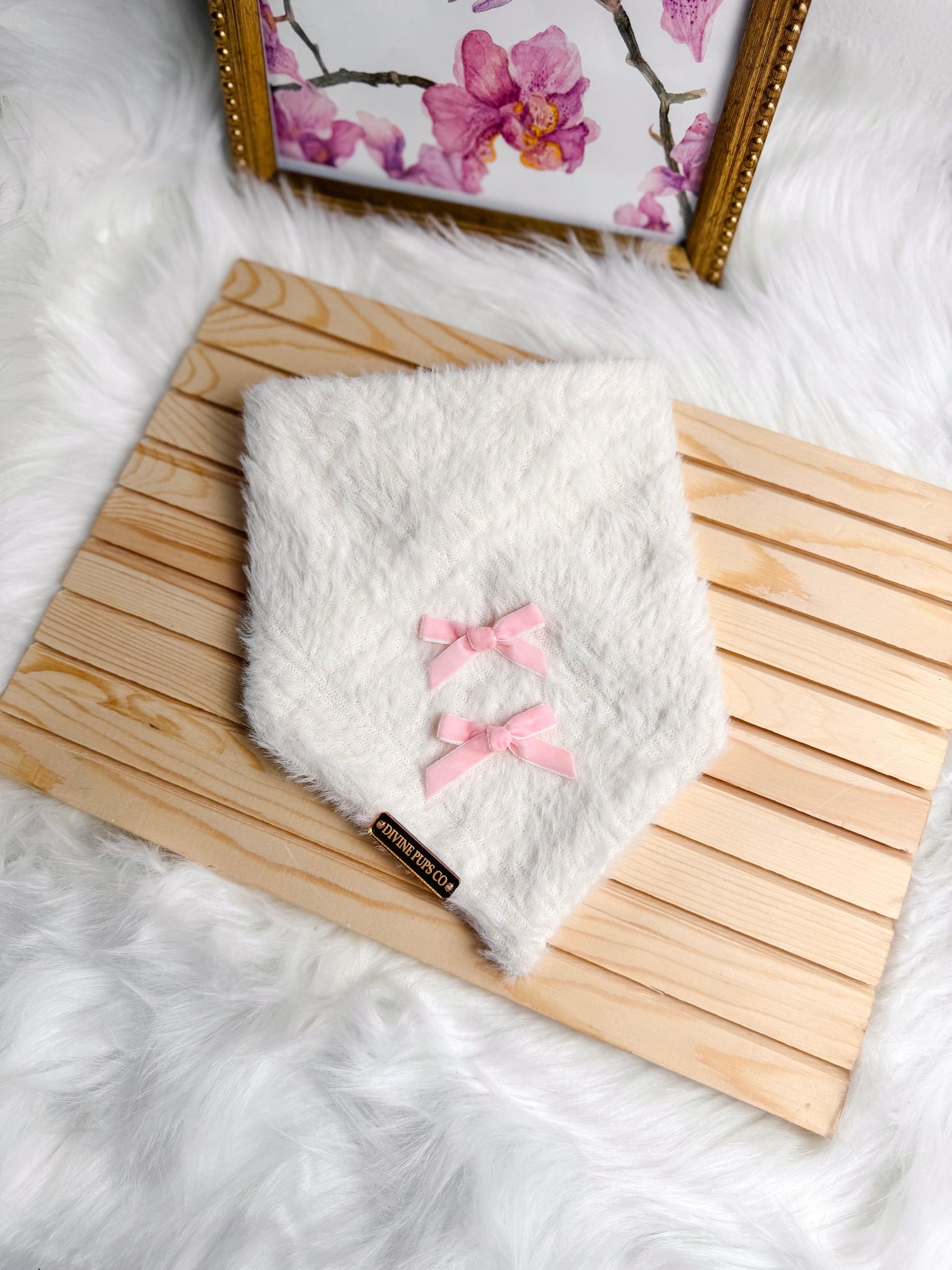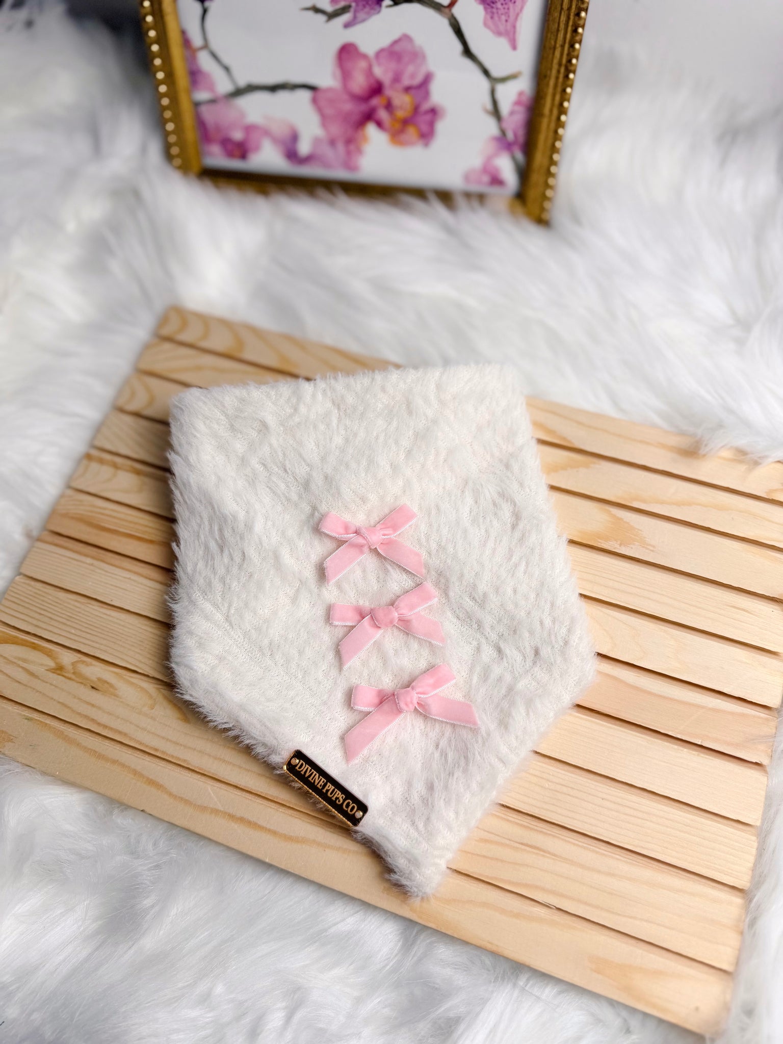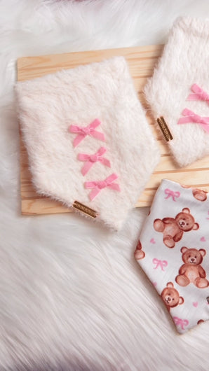 Love is in the air! 💞 This banana is pawfect for Valentine’s Day. It’s made of a fuzzy white fabric and you can choose to have 2 bows or 3 pink bows. Note: an XS bandana doesn’t fit 3 bows. There are 2 buttons on each strap, making it adjustable and easy to snap on! Each bandana is topped off with one of our signature logos, a brown vegan leather fold over tag or gold acrylic tag. Handmade in Montreal, Canada.