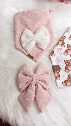 Love is in the air! 💞 This banana is pawfect for Valentine’s Day. It’s made of thick cotton. The bow tie or sailor bow is attached to the bandana and cannot be removed. The matching sailor bow is purchased separately. There are 2 buttons on each strap, making it adjustable and easy to snap on! Each bandana is topped off with one of our signature logos, a brown vegan leather fold over tag or gold acrylic tag. Handmade in Montreal, Canada.