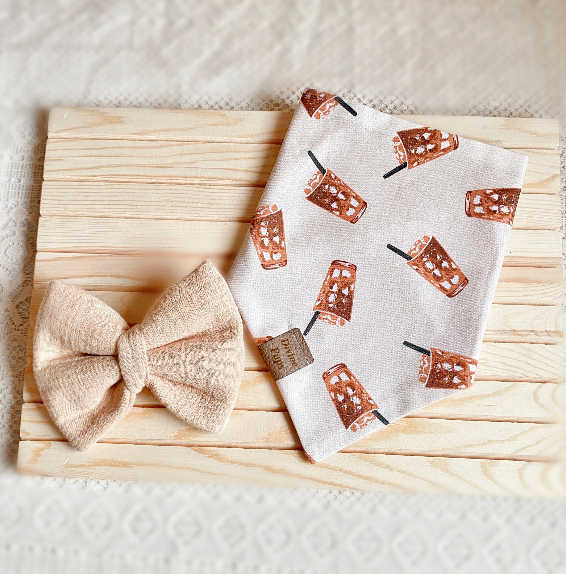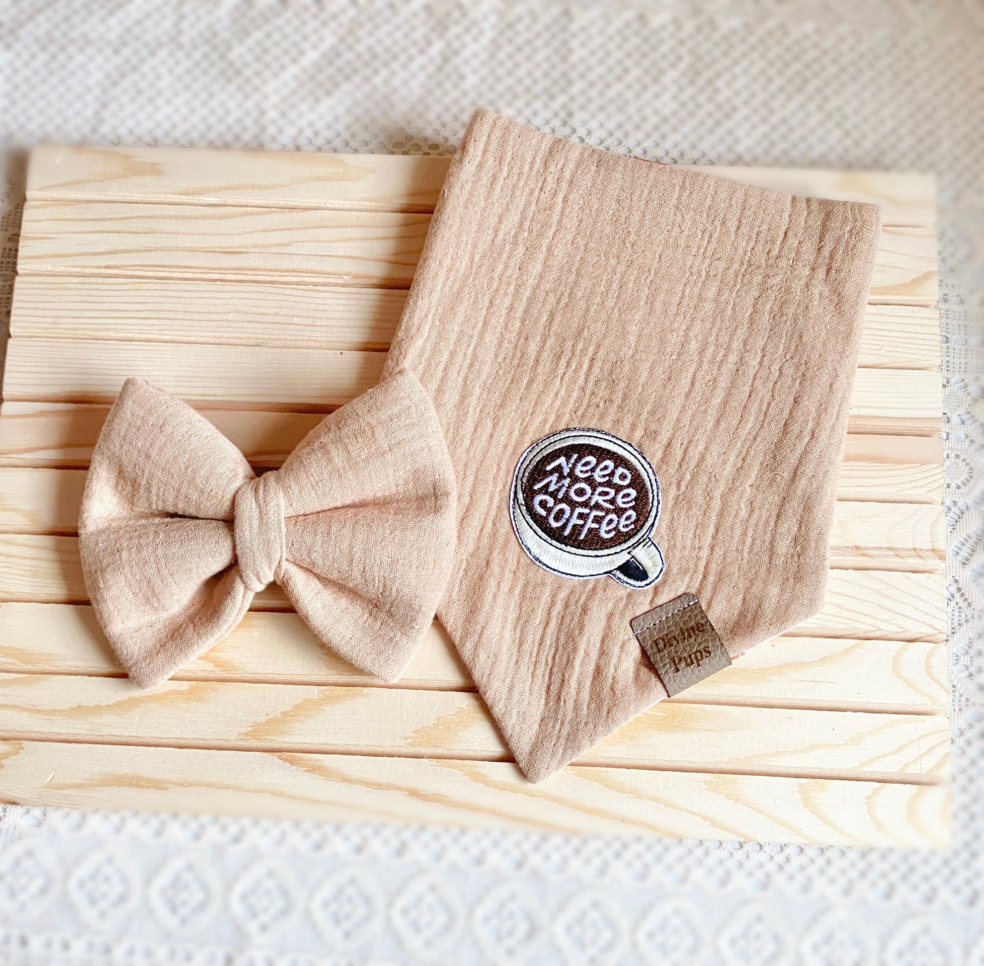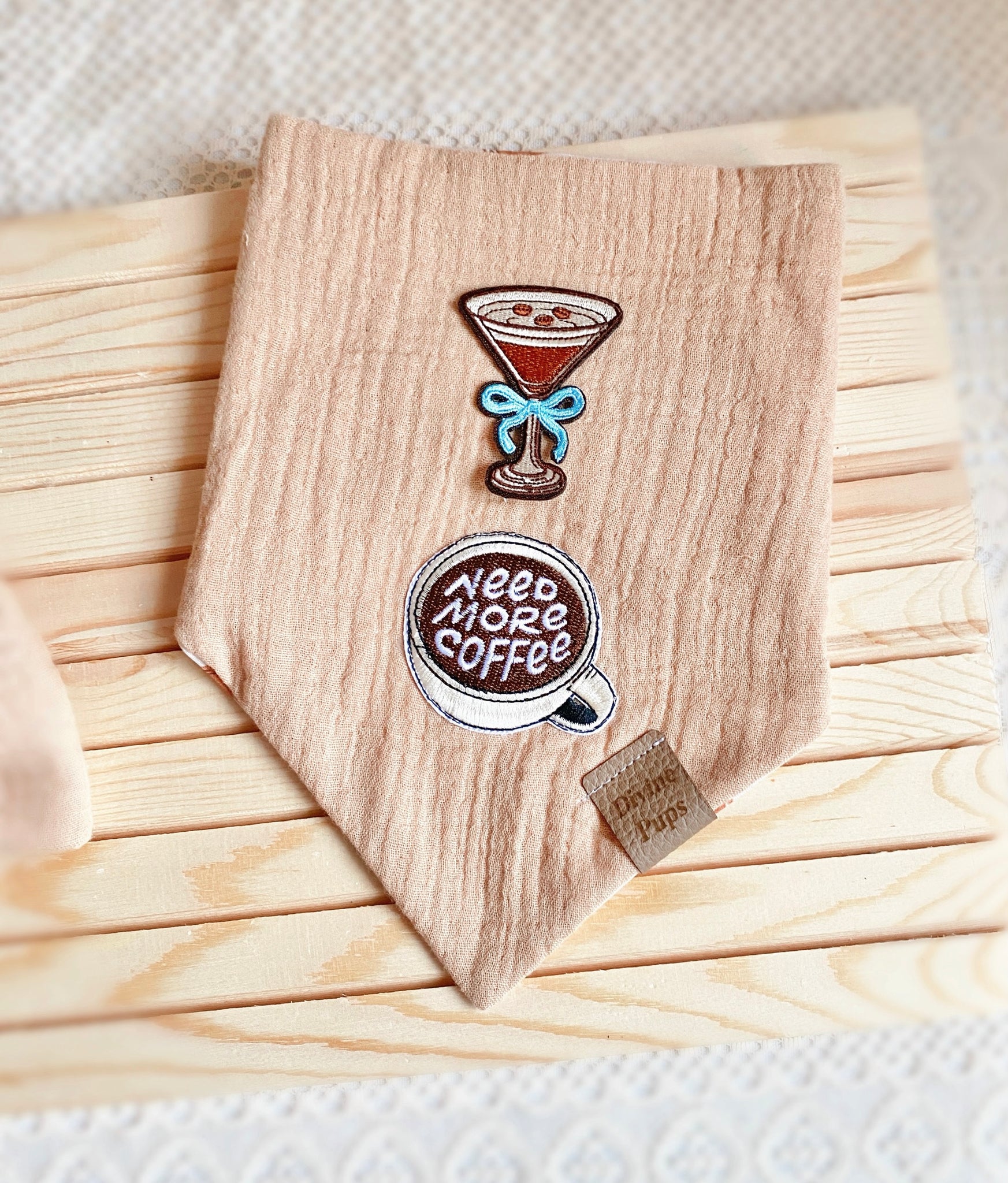 This bandana is made of a cotton print on the front and a brown double gauze fabric on the back. The two coffee patches are optional. There are 2 buttons on each strap, making it adjustable and easy to snap on! Each bandana is topped off with one of our signature logos, a brown vegan leather fold over tag or gold acrylic tag. Handmade in Montreal, Canada.